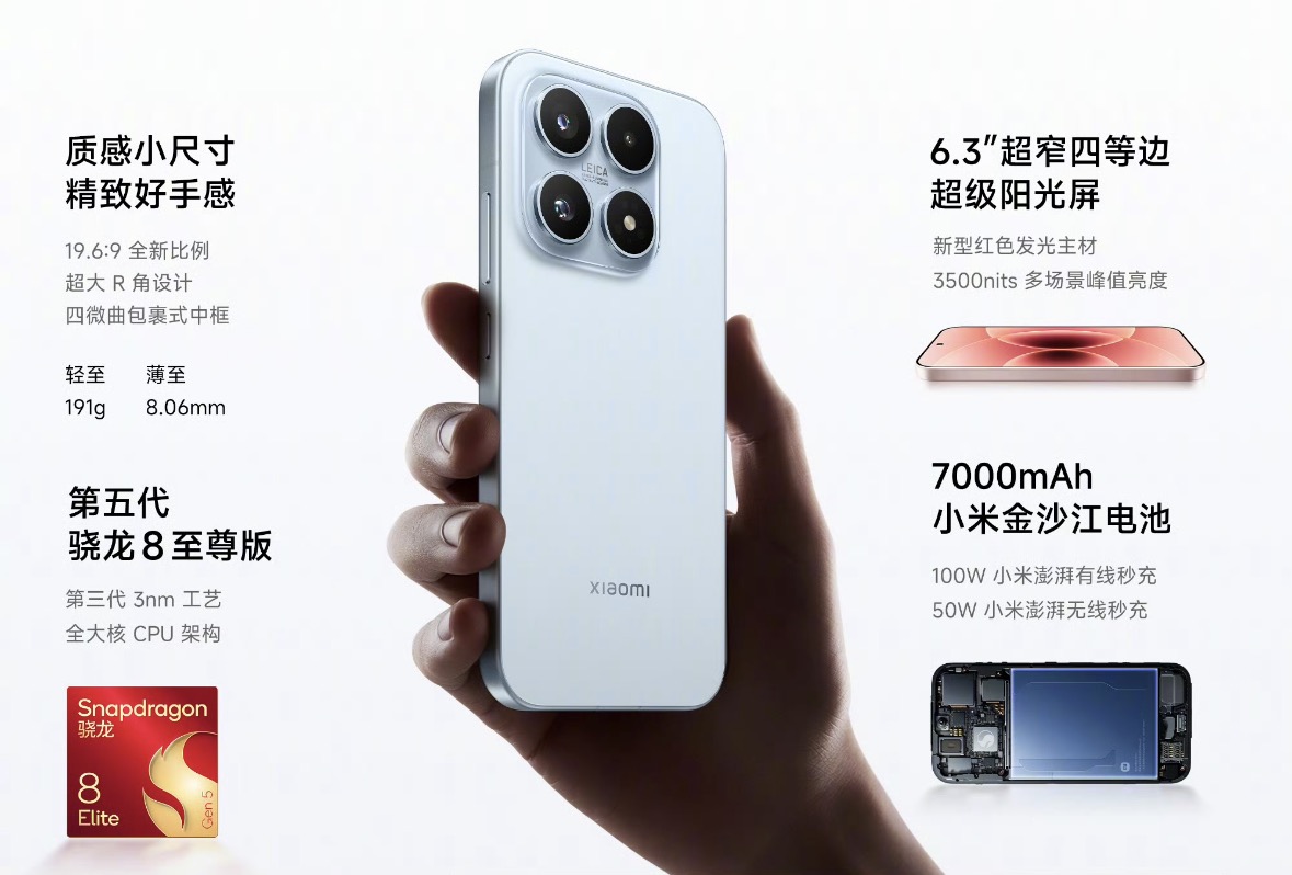 9 月 25 日,小米在北京国家会议中心召开年度旗舰新品发布会,正式发布全新 Xiaomi 17 系列。 本次发布的全新 Xiaomi 17 系列由三款重磅产品组成,其中 Xiaomi 17 为 6.3 英寸小尺寸旗舰,首发第五代骁龙 8 至尊版移动平台,搭载 7000mAh 小米金沙江电池,徕卡 Summilux 影像系统。