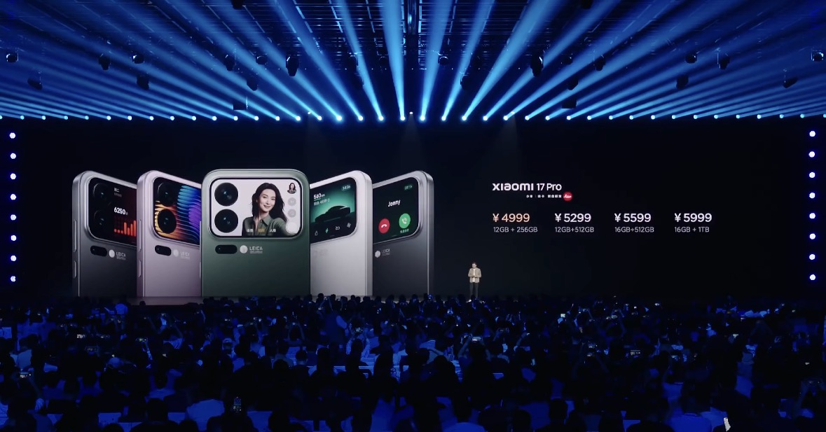 Xiaomi 17 Pro售价分别为:12GB+256GB 售价 4999 元、12GB+512GB 售价 5299 元、16GB+512GB 售价 5599 元、16GB+1TB 售价 5999 元;