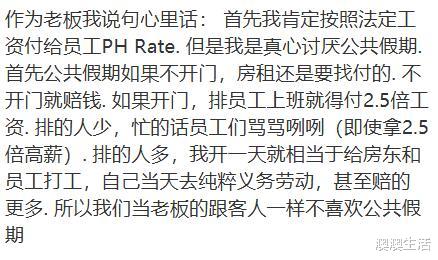 网友的帖子下面,就有华人老板表示,自己也很讨厌公共假期,毕竟不营业就要赔钱,营业就要付员工2.5倍工资,不收附加费不现实。