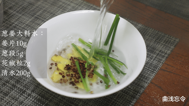 葱姜大料水:姜片10g、葱段5g、花椒粒2g、清水200g
