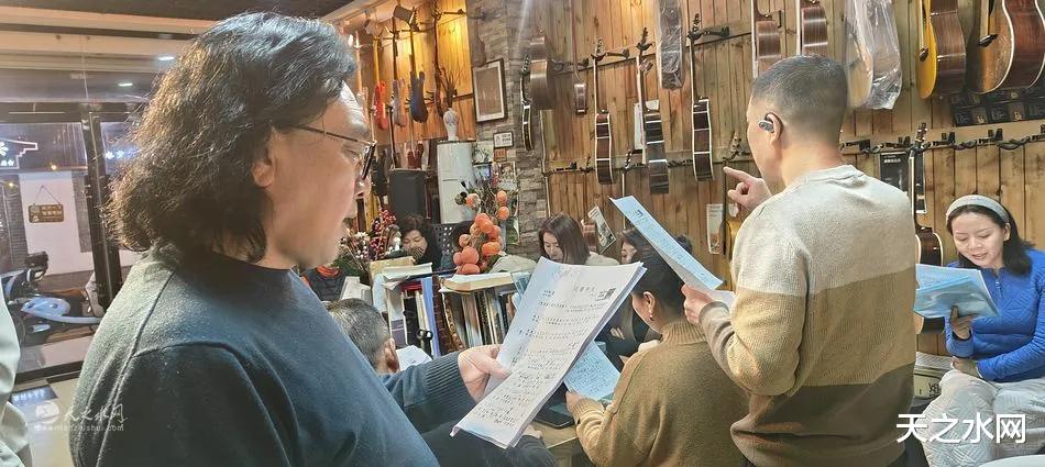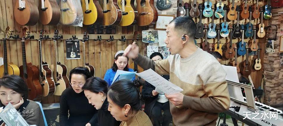 沙龙创办人吴晓亮表示,其初衷正是为了打造一个“开放、温暖、持续”的音乐共同体。“音乐不仅是技艺,更是人与人之间的情感纽带。每晚的集体练唱,就是一种日常的陪伴和精神凝聚。”吴晓亮是天水土生土长的资深音乐人,自幼喜爱并研习各种乐器,于2003年创办杰奏乐器行,至今已培养上千名器乐学生。他身兼多职:天水市吉他研究会会长、市音乐家协会理事、区教育局中小学生器乐考级评委,同时也是多所小学的社团外聘教师。多重身份的背后,是他对普及音乐教育、滋养本地文化生活的执着热情。