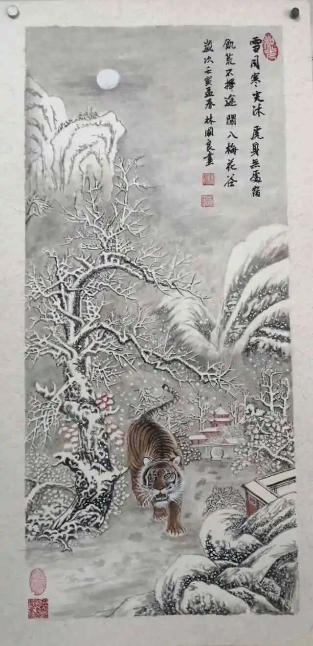 林国良,出生于浙江省温州市瓯海区琦君故里,从小酷爱书画艺术,受诸多名师指教。后期有幸得到中国美术学院周志昊、赵茹茹等大师的教授,受到系统的专业培训,並接受过油画、国画创作实践。现为 “墨艺軒” 主人、瓯海区美协会员、北京当代书画院理事、优秀指导教师。2018年10月份被中国书画家职称评定中心评为一级美术师,其作品现被润格为:国画8000元(人民币)/平方尺,书法5000元(人民币)/平方尺。油画及国画作品参加 全国书画大赛活动中多次荣获:金奖。2020年10月份参加温州市纪委举办的 “清廉温州" 书画大赛《廉洁清正》国画作品荣获:三等奖,11月份参加温州大学民俗博物馆书画展览,本人创作的国画《麻姑献寿图》作品被博物馆永久收藏。同年经美国洛杉矶汉天艺术网审核,应邀成为该网站特邀艺术家。2020年12月荣获“中国当代最具影响力艺术家”,并入书画艺术大师数据库。2022年入编《盛世中国书画大典》及由中国国际出版社《艺术中国 百年典藏》出版书画作品合集。2023年6月份在温州大学民俗博物馆举办的“校地融合,乡村文化进高校”个人作品展,本人1 6幅国画作品都被温州大学博物馆收藏。同年被中国艺术家信息公示系统授予 人民艺术家资质证书。並经C C TV华夏之声栏目组研究决定,特聘为“特邀艺术家”,並由央视C C T V(艺术名家)栏目组、C C T V(艺术传承)栏目组授予《当代艺术名家书画工作室》牌匾一个。