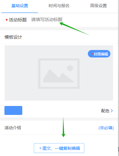 标题要响亮简洁,(让人一看就知道是什么内容),上传精美封面图,颜值担当。然后在“活动介绍”里面写个详细简介。