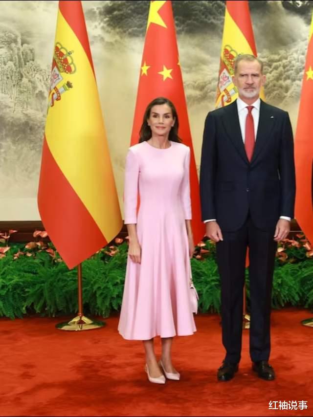 粉色在中国文化中象征着爱情、女性魅力和好运,王后选择这一色彩,既融入当地传统,又展现出独特品味。这套服装经过精心搭配,既不过于拘泥传统,又保留了现代感与辨识度,完美诠释了时尚外交的精髓。