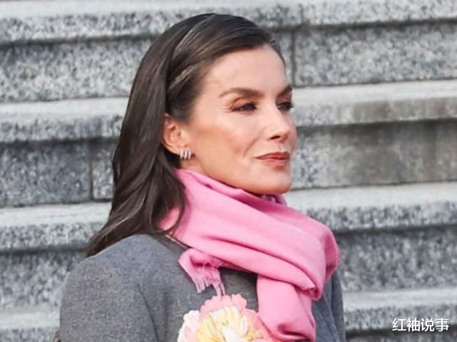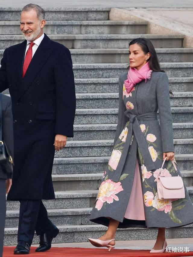 莱蒂齐亚王后好美,粉花刺绣大衣仙气飘飘