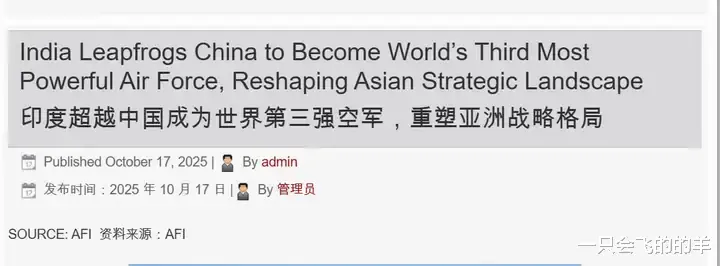 印度的“赢学”真让人不得不“佩服”,美国的一份“野鸡排名”都能让印度媒体兴奋到极点,拿来反复炒作,而大量不明真相的印度人都信以为真,认为印度在空中力量领域超越了中国。
