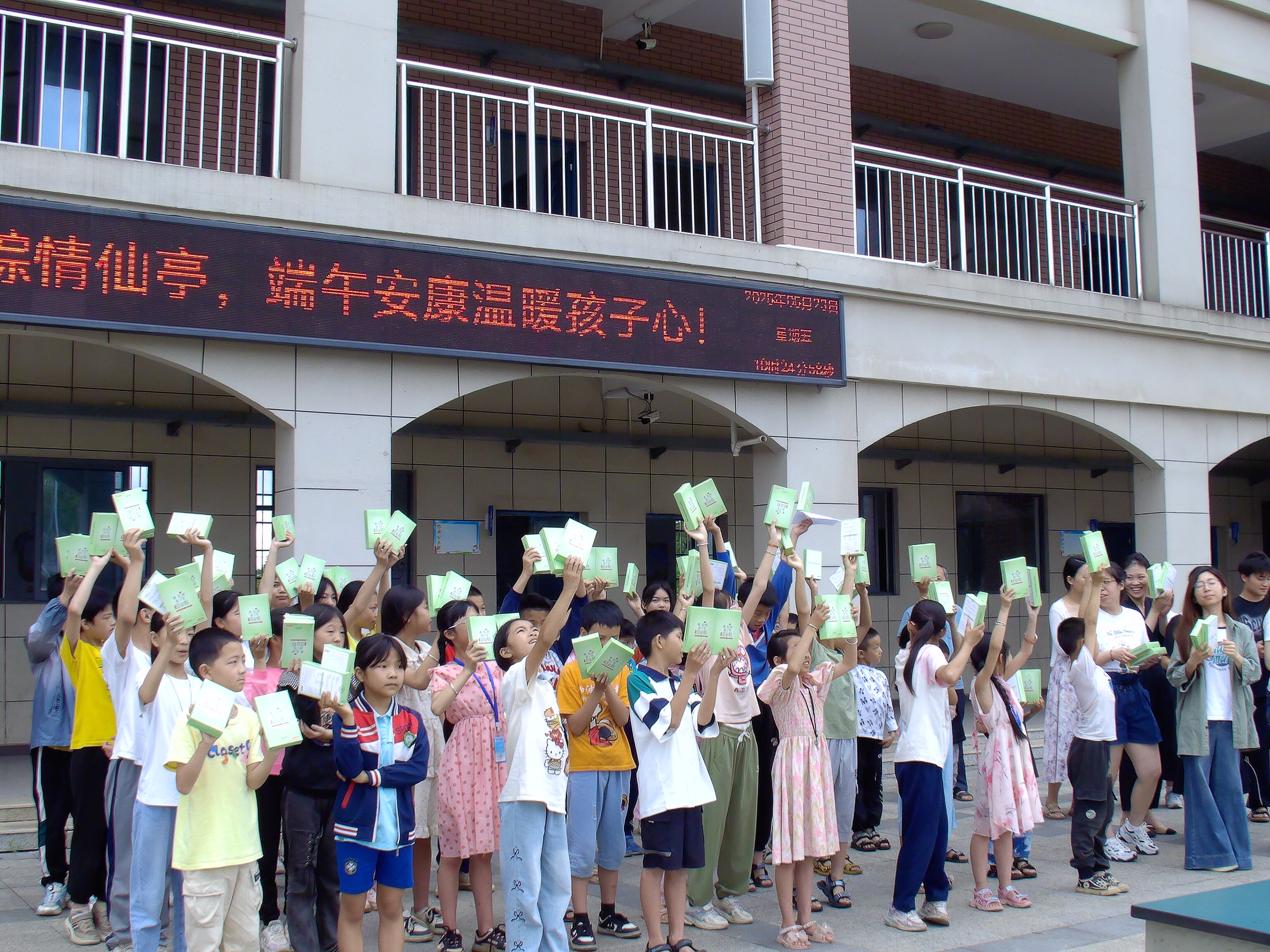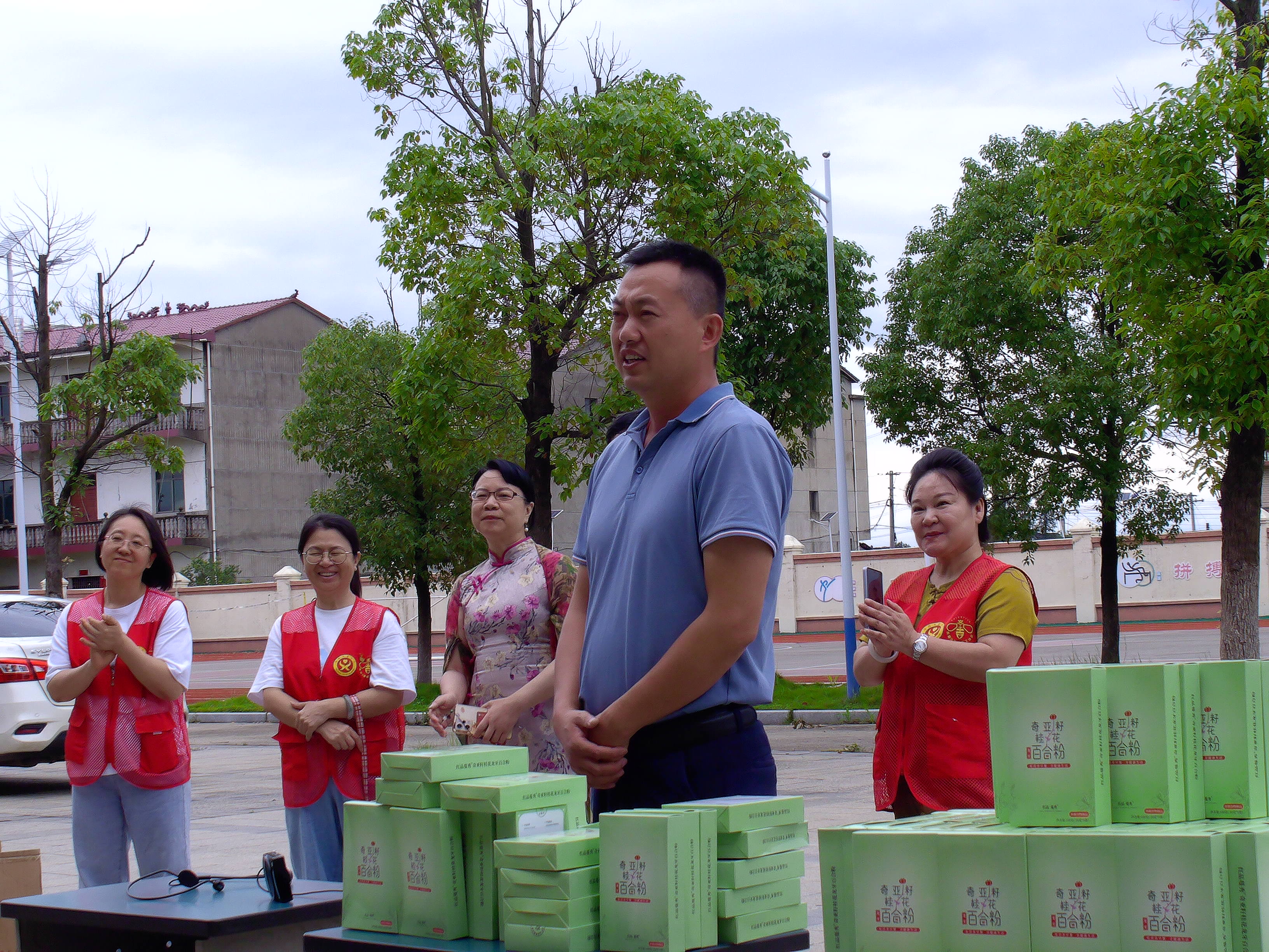 温暖的和风吹在松湖镇仙亭江铃小学的操场上,42名孩子整齐列队,迎接着一份特殊的“端午礼物”。由爱心企业红品蔓秀品牌捐赠的两大箱120盒龙牙百合粉等物资在此集中发放。孩子们手捧的营养品,脸上洋溢着纯真的笑容。“百合粉可以泡水喝,对身体好!”一名五年级学生兴奋地向同伴介绍。
