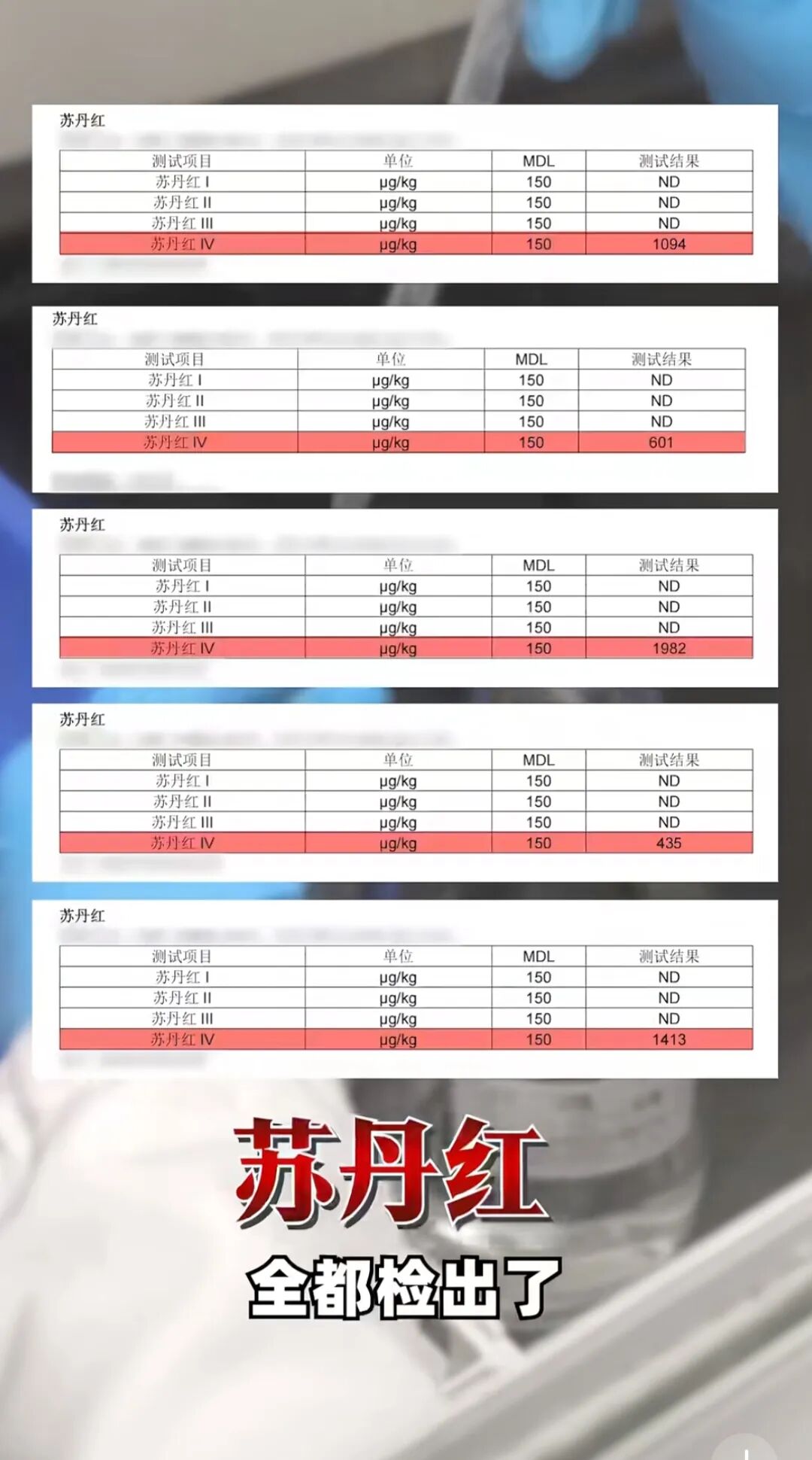 护肤博主成分主义者Davy同样表示,在老爸评测视频中出现的产品,检出的苏丹红含量都在0.5-2ppm之间,远低于安全线,不至于急性中毒。