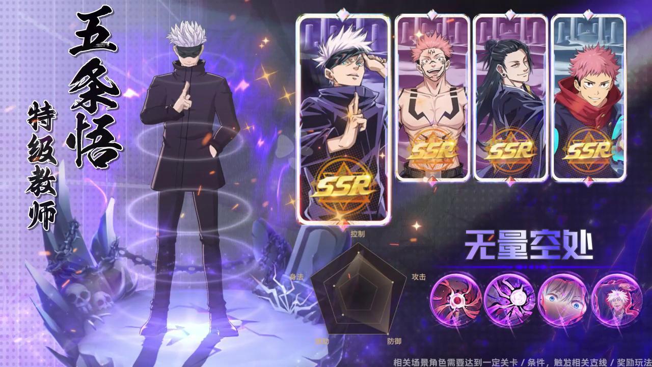 五条悟 + 两面宿傩 + 伏黑甚尔 + 七海健人 + 家入硝子双 T0 核心(五条悟 + 两面宿傩)输出拉满,伏黑甚尔补伤害,七海健人远程压制,家入硝子续航。这套阵容打竞技场能进前 50,高难副本满星通关,中氪玩家养这套,不用花太多钱就能有不错的排名。