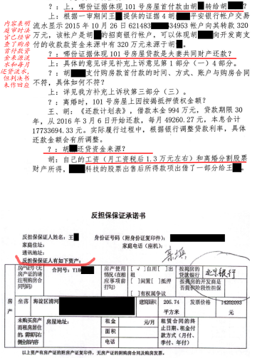 图三:二审审理的部分庭审笔录图四:王某用案涉房屋贷款担保承诺书