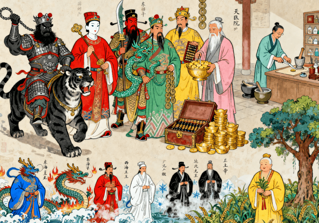 第四章 资源民生:财富医疗与自然调控体系天庭不仅要维系秩序,更要保障三界生灵的基本生存与发展需求,因此形成了覆盖财富流通、医疗救助、自然调控的资源民生管理体系,这一体系直接关系到三界的稳定与生灵的福祉,是天庭行政的 “民生保障线”。