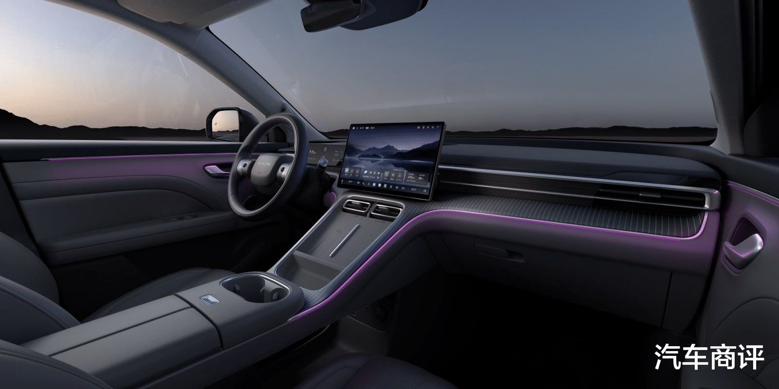 进入到车内,AION i60的内饰设计同样没有太特殊的设计细节,简洁的中控台以悬浮式液晶屏作为视觉重心。在这一基础上,中控台和中央马鞍座区域通过不同面料进行分区,凸显立体感。而在用料层面,AION i60在座舱四周也采用了比较丰富的软性PU包裹,触感比较细腻,同样符合家用定位。