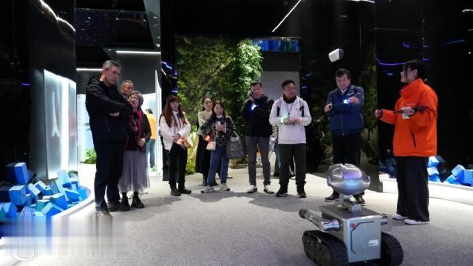 新潮与科技相伴。下午,参访团走进武商梦时代,感受武汉“科技+文旅”深度融合的新潮活力。在全国首个机器人主题沉浸式奇幻空间里,机器人的灵动舞蹈、机器狗的趣味互动、9D影院的奇幻体验,让大家近距离触摸前沿科技的魅力;漫步商场,融合荆楚文化的特色文创、多元丰富的消费场景、热闹鲜活的市井气息,全方位展现着武汉时尚多元、烟火氤氲的城市风貌。台湾旅行商业同业公会总会理事长吴盈良感慨道:“没想到有这么新奇的机器人和高科技的展示,这个项目对台湾的客人很有吸引力的!”参访团成员边走边看,深入了解武汉文旅消费的新趋势、新场景,为鄂台文旅产品的融合开发寻找新思路。
