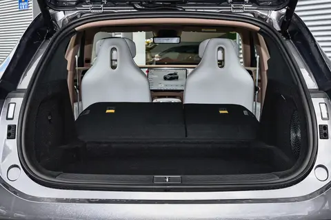 操控灵活度相应突出:后置后驱布局让窄路掉头“一把到位”,无需倒车调整;前双叉臂+后五连杆独立悬架滤震出色,过减速带时颠簸感轻微,后排乘客反馈“比燃油车稳太多”,路面小坑洼可快速吸收震动,无多余弹跳。