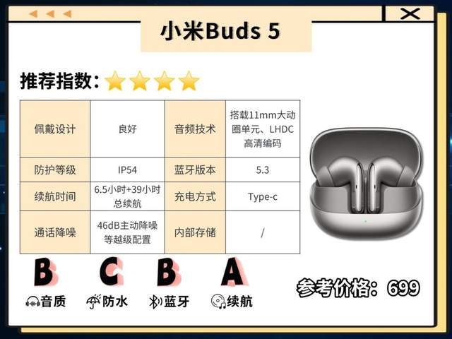 续航时间:单次8小时蓝牙版本:5.4参考价:699
