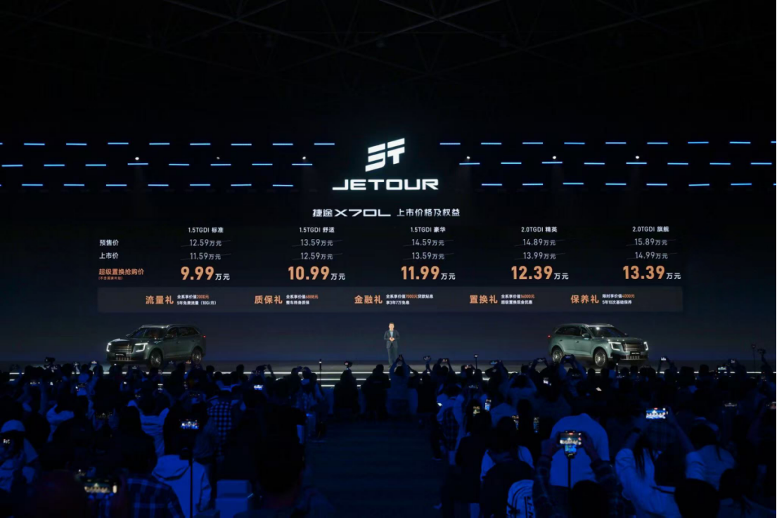 9 月 25 日,捷途 X70L 全国上市发布会在贵阳举行,公布置换抢购价 9.99 万元起,并推出五项上市权益:全系享 5 年免费流量(10G / 月,价值 2000 元)、整车终身质保(价值 6888 元)、贷款贴息 7000 元(含 3 年 7 万免息)、置换现金优惠 16000 元,限时享 5 年 10 次基础保养(价值 4000 元)。 知名演员王耀庆以首席品鉴官身份亮相,演唱两首代表作,并表示:“捷途 X70L 不是配置的堆砌,而是每一处体验的贴心与越级,既撑得起场面,又装得下全家需求。”