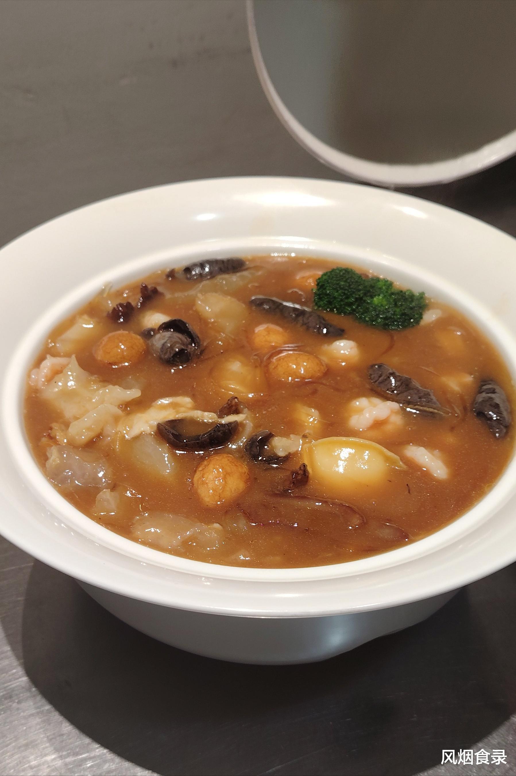 这菜讲究“多味合一”,鸡肉嫩、海参弹、鱼肚糯,咸鲜里透着醇香,