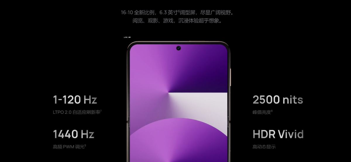 华为Pura X聚焦内容沉浸与便捷交互体验,内屏6.3英寸采用16:10阔型比例,阅读、观影、浏览图片时视野更宽广、内容更舒展;支持1-120Hz LTPO自适应刷新率,画面流畅且兼顾续航。外屏3.5英寸(1:1比例)支持灵动熄屏显示,社交回复、导航查看、短视频浏览、外屏游戏等高频操作无需展开机身,高效又有趣。