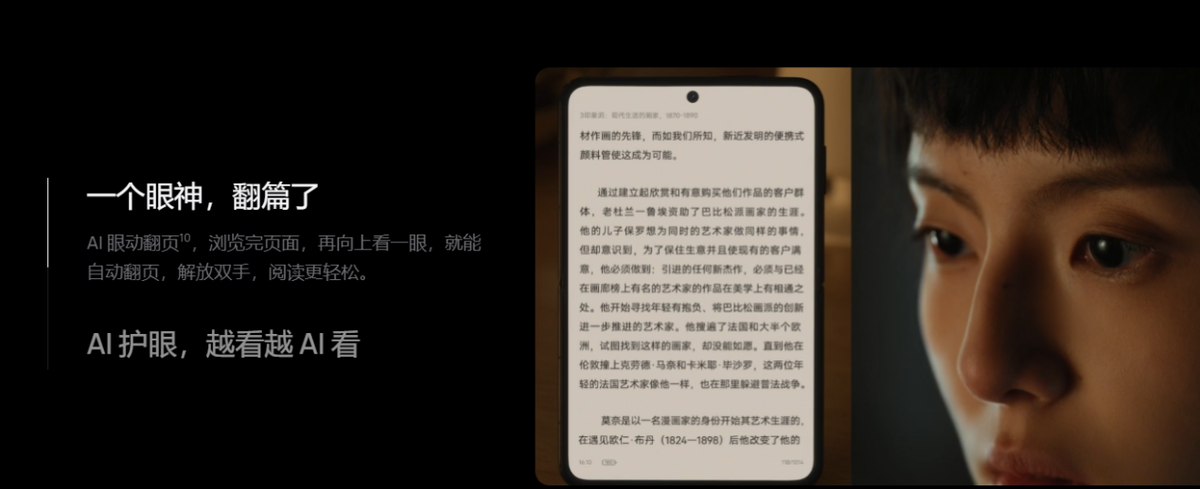 通信上搭载第二代灵犀通信技术,在高铁、偏远地区等弱信号场景中,通话接通率与上网速率显著提升;支持天通卫星通信,即使地面网络无法触及,也可以进行应急通信。续航上支持40W无线超级快充,和66W有线超级快充,机场候机30分钟可充至80%以上;散热采用超高导热石墨烯材质,长时间使用也拥有流畅、稳定的使用体验。还具备IPX8级抗水能力,轻松应对差旅中的意外泼溅;支持AI眼动翻页功能,阅读时只需注视屏幕边缘即可翻页,解放双手。