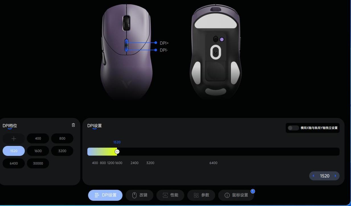 鼠标支持雷柏全新自研的A HUB驱动,可以轻松连接雷柏最新发布的电竞键鼠外设,配置文件跟随应用程序自动切换,板载存储与云端存储个性化设置。而且在A HUB驱动软件中还可以进行DPI设置、改键、性能、参数以及鼠标设置五大功能区,布局设计简洁直观;在A Hub驱动上,可以选择不同回报率,从实际体验来看,在开启1K回报率时,雷柏VT9 MAX鼠标妥妥能续航750小时,即便是开启8K回报率,也能给到120小时的续航,彻底释放王者性能。