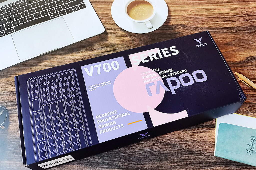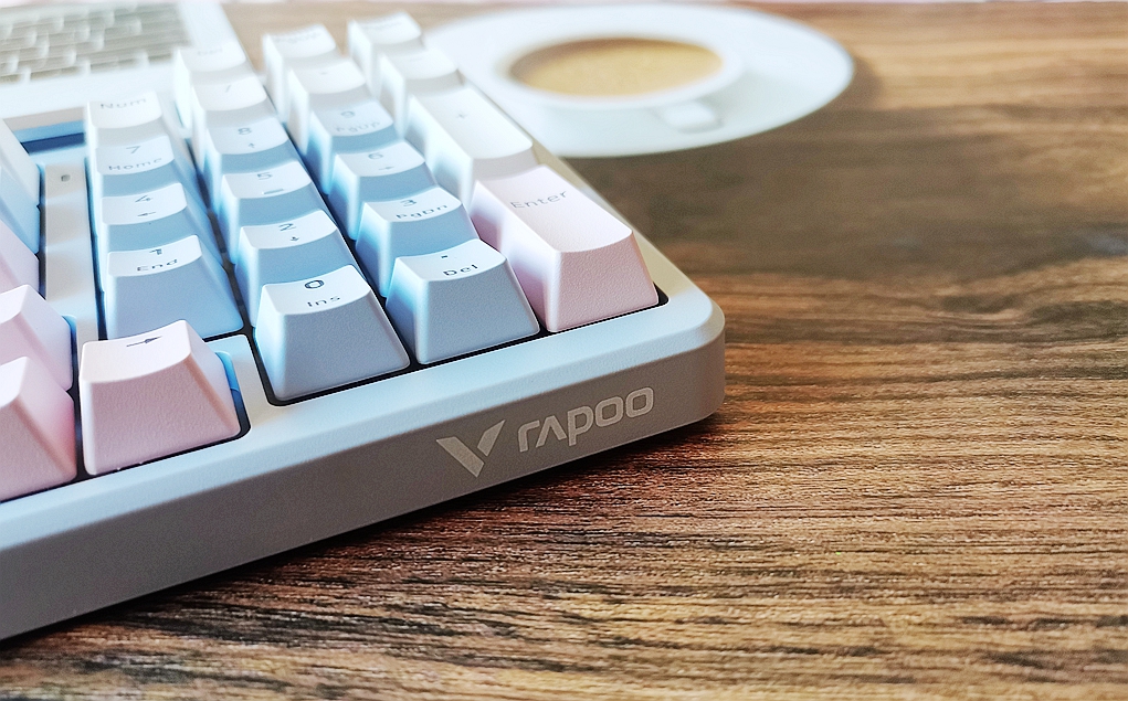 雷柏V700DIY-98长续航版键盘:采用了清新的莫奈仙踪设计,整体造型流畅自然,颜色搭配现代感十足。键盘的主色调是白灰色,搭配多彩的键冒,既简洁又不失精致。键帽使用双色注塑工艺PBT材质,触感干爽,反馈较为硬朗。PBT材质的好处就是不易出现字符磨损,而且还能保证手感的稳定。