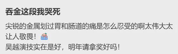 朱枫的孙子朱则安也表示,吴越老师还原了朱枫从容、亲切、有涵养的模样,让他很震撼。