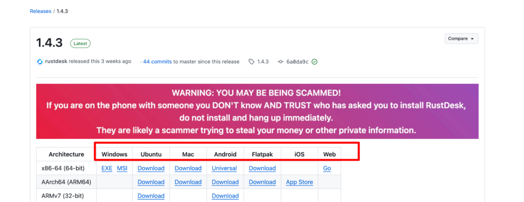 ruskdesk官方客户端下载https://github.com/rustdesk/rustdesk/releases/tag/1.4.3选择适合自己的客户端下载即可