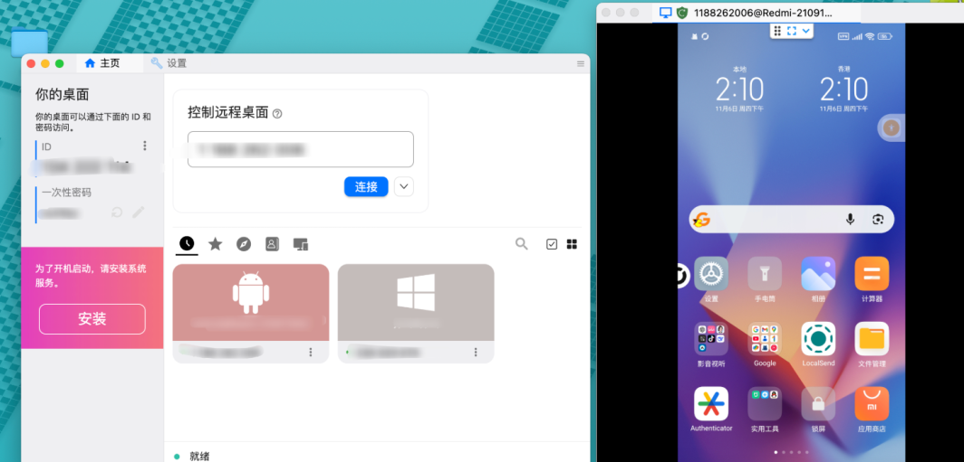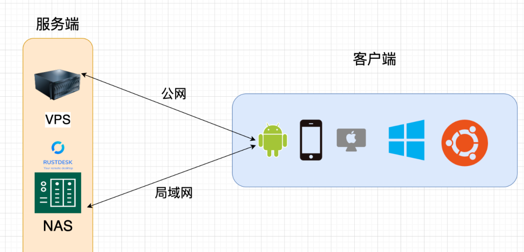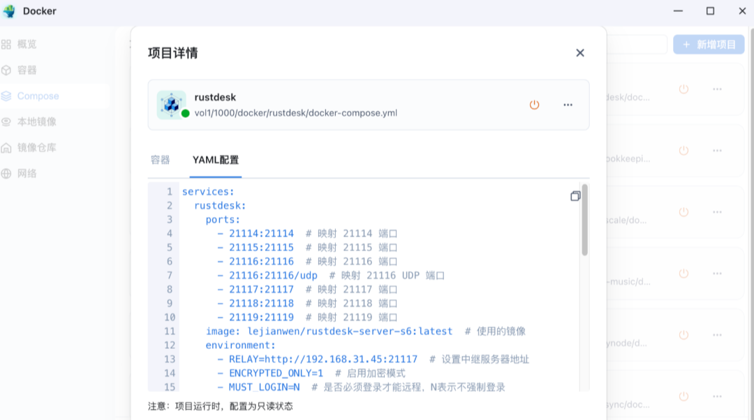 ②飞牛云NAS部署我们直接复制以上VPS的compose配置即可如果没有公网IP的话直接填飞牛云NAS的IP然后可以实现局域网内远程控制
