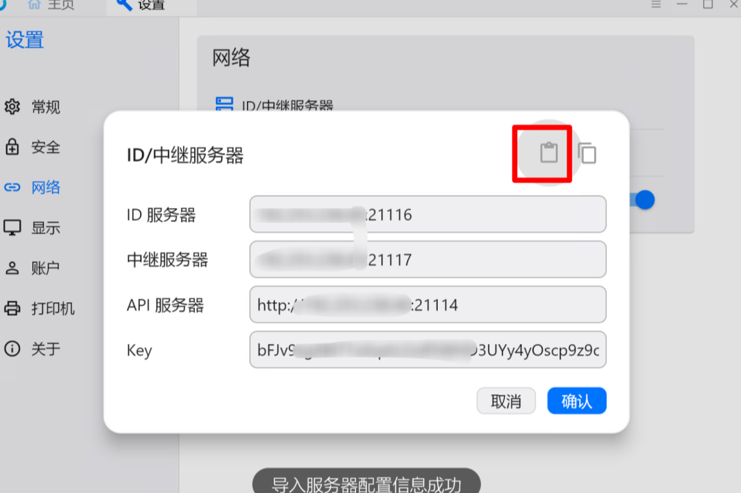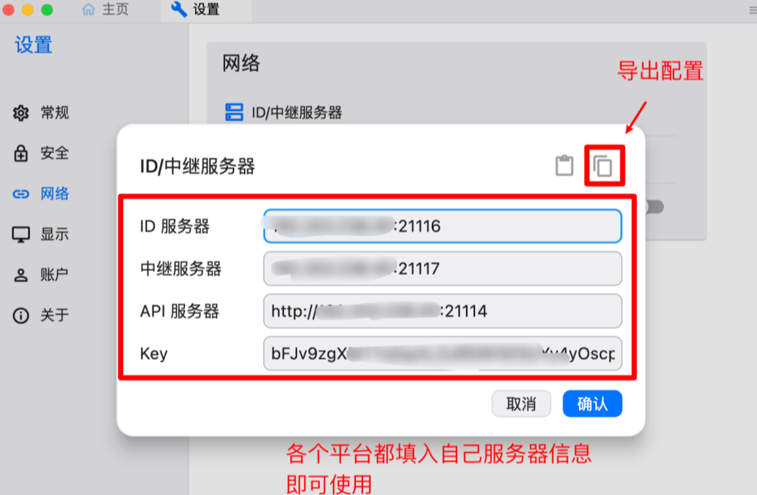 根据图示在各个平台客户端填入自己的服务器信息以及Key即可使用