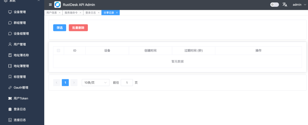 RustDesk API Admin服务可以查看一些日志之类的信息