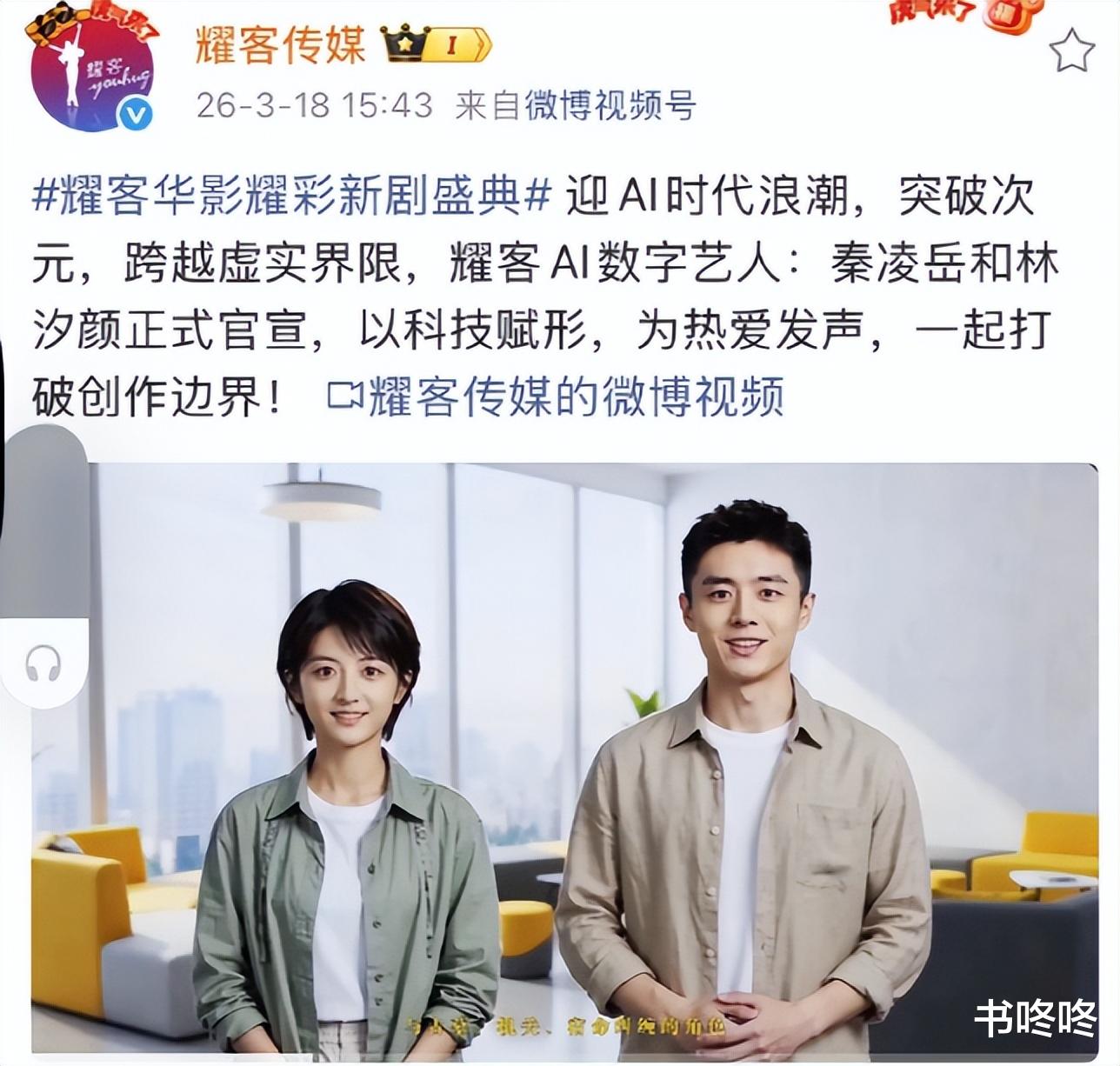 另外,几乎是同一时间,耀客传媒官宣签约两位AI数字艺人秦凌岳、林汐颜,并已安排他们在剧集中出演角色。