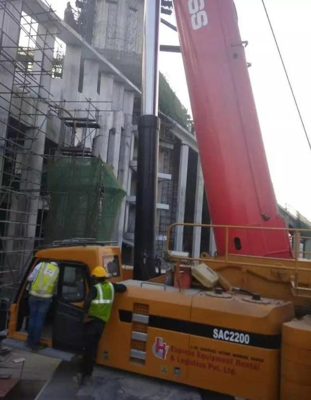 我们的吊臂非常强大,最高可以完成150米的的高空作业,而且只要风速合适,10分钟就能把100吨重的东西,直接升到140米的高空。