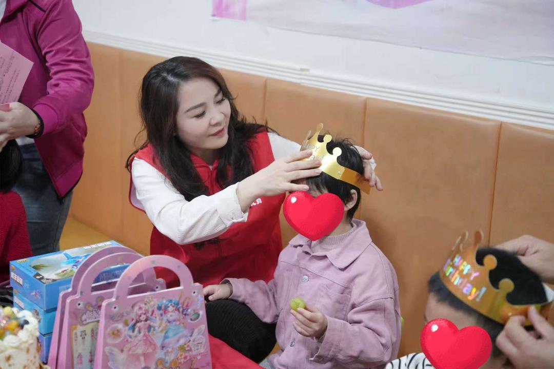 捐赠仪式后的集体生日会更是将活动温情推向高潮。赵莉莉理事长邀请主办方、协办单位代表及爱心人士,共同为当月11名自闭症儿童庆生。当生日蜡烛点亮,孩子们捧着爱心书包里的趣味贴纸,脸上绽放出纯真的笑容,有些孩子还主动拉起兰雪女士的手,用稚嫩的声音说着“谢谢”。这一幕,让在场所有人深深感受到公益的意义——不仅是物质上的帮扶,更是用陪伴与关爱,为特殊群体的世界打开一扇温暖的窗。