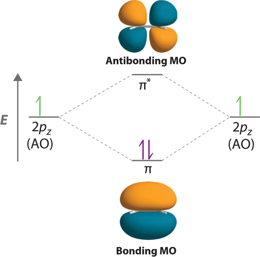 中,每当两个原子轨道发生重叠时,总会形成一对轨道:一个能量较低,另一个则是能量较高。