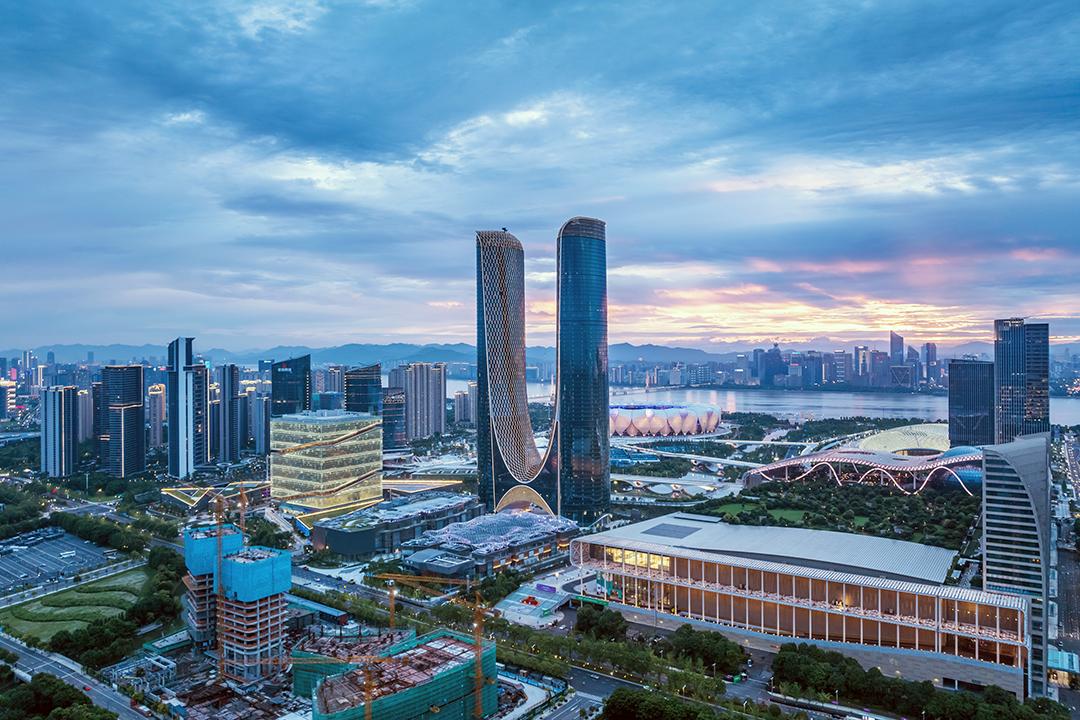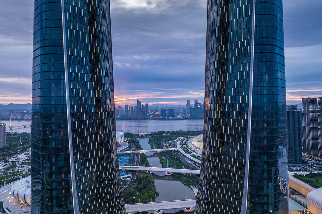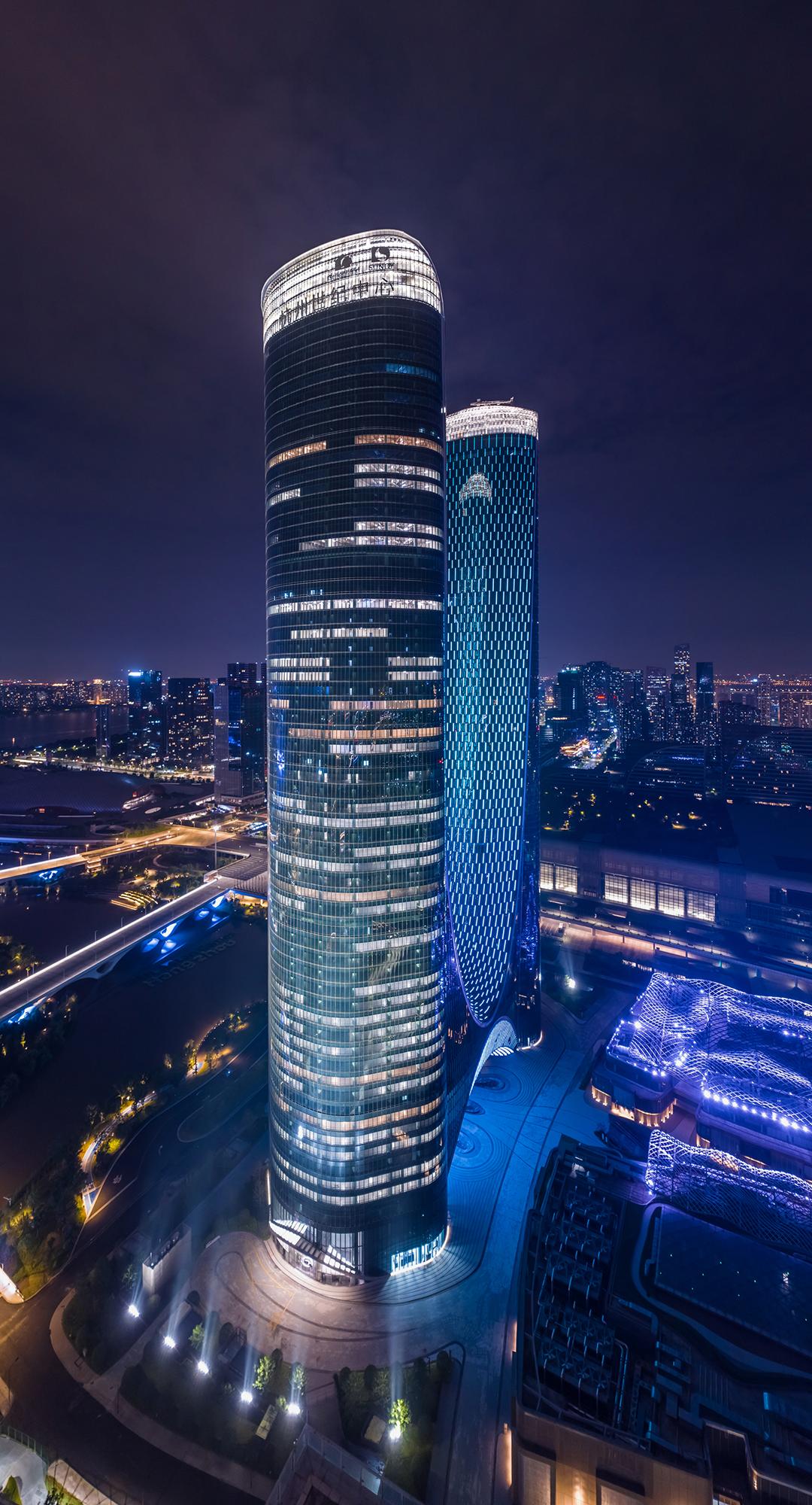 作为目前杭州已建成的最高楼,整个项目体量约53万平方米,由两栋超过300米的塔楼及商业区域构成,功能涵盖高端办公、华尔道夫酒店与商业配套。2024年,它还接连斩获CTBUH全球奖的多项荣誉,包括300-399米级别的最佳高层建筑奖及亚洲区奖项。