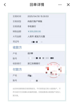 签约后,胡某强全力筹备,陆续投入超260万元购置生产线、破碎机、筛分设备、输送带及配套电力设施等,资金来源包括其多年积蓄。2025年4月30日,他向宏某公司相关人员指定的“倪某芝”账户转账20万元,用途注明为租金等相关费用,承载着创业成功的期望。