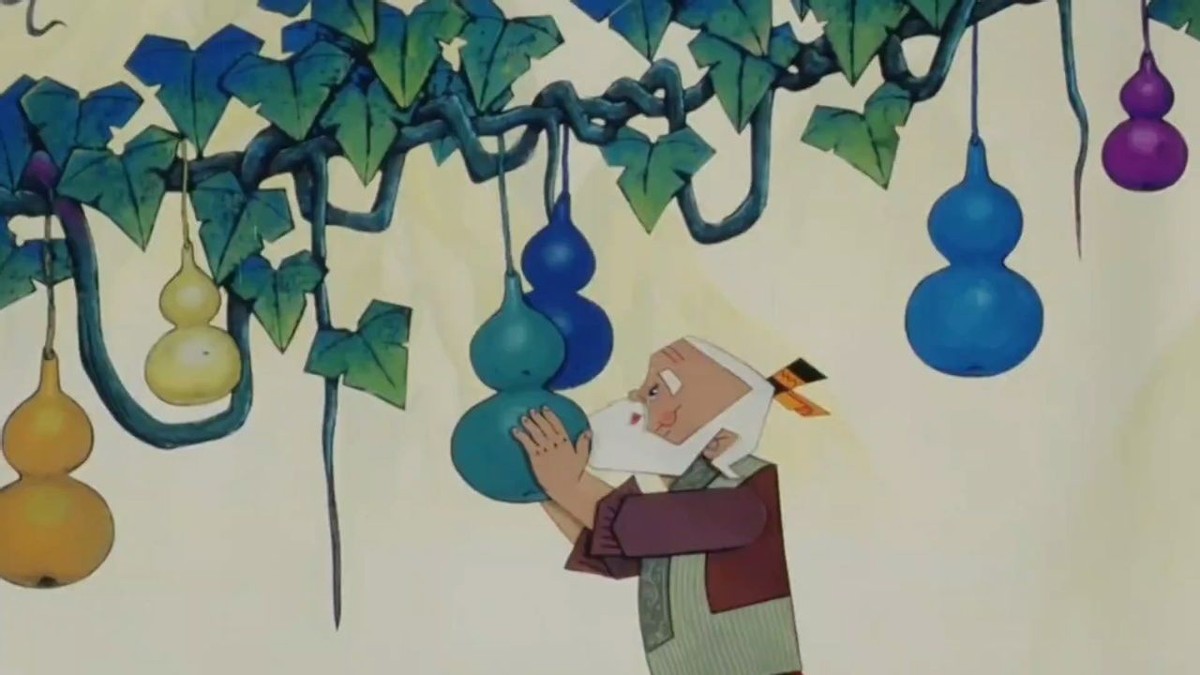 而爷爷的茅草屋前,葫芦藤顺着竹架蜿蜒而上,一串串葫芦在风中轻荡,暖黄色的光晕里藏着中国山水画的留白意境。看完后觉得自己又看了一集《葫芦兄弟》!