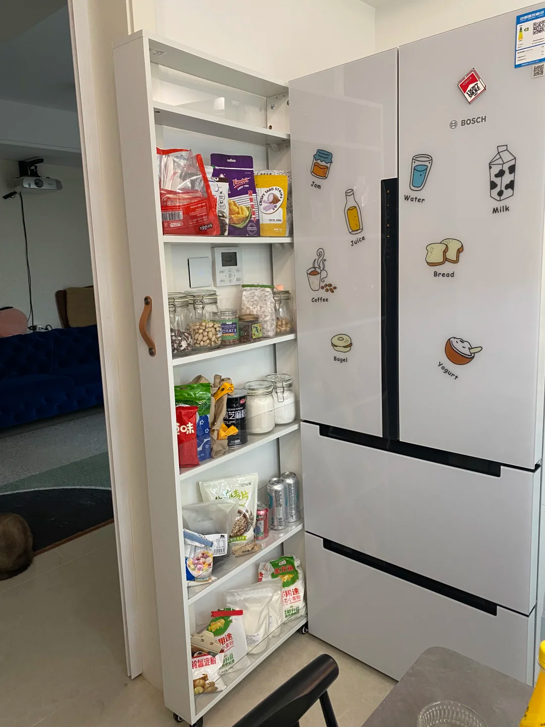 网友@鹰眼 的分享:我家的冰箱侧边有点空间,我就在这里做了一个薄柜,放点厨房的调料、杂物之类的。
