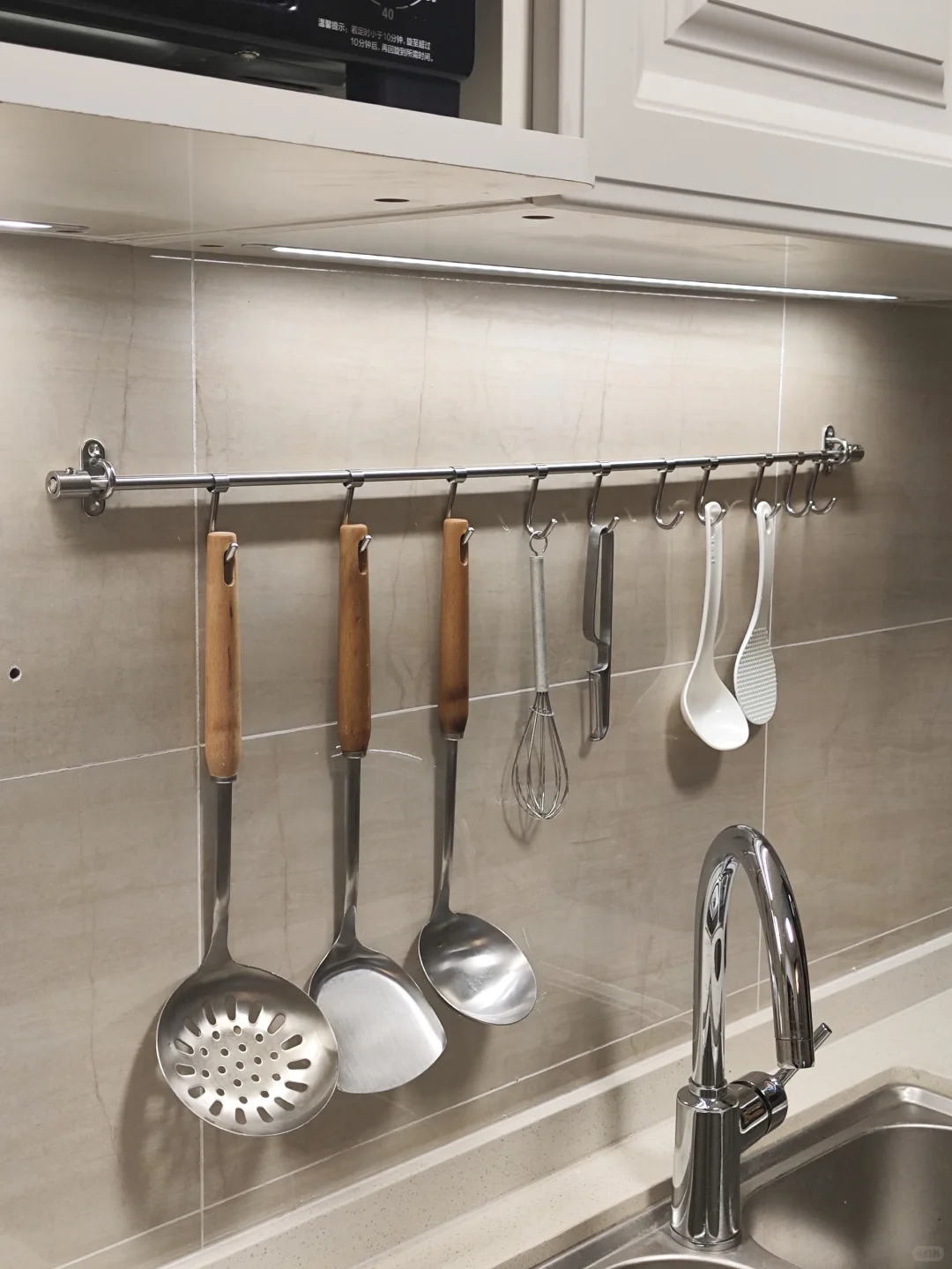 挂杆的长度根据自己的需求来选择,挂钩的数量也是可以自己增加的,而且价格还不高,非常的实用。
