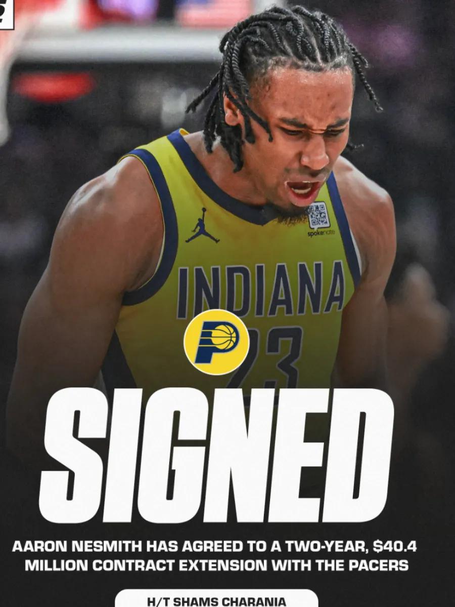 印第安纳步行者完成今夏最超值签约! 10月21日,ESPN率先爆出消息:步行者与锋线悍将阿龙·内史密斯达成两年4040万美元的提前续约。结合他原有的合同,未来四年总薪资仅为6240万美元,堪称联盟性价比最高的合约之一!