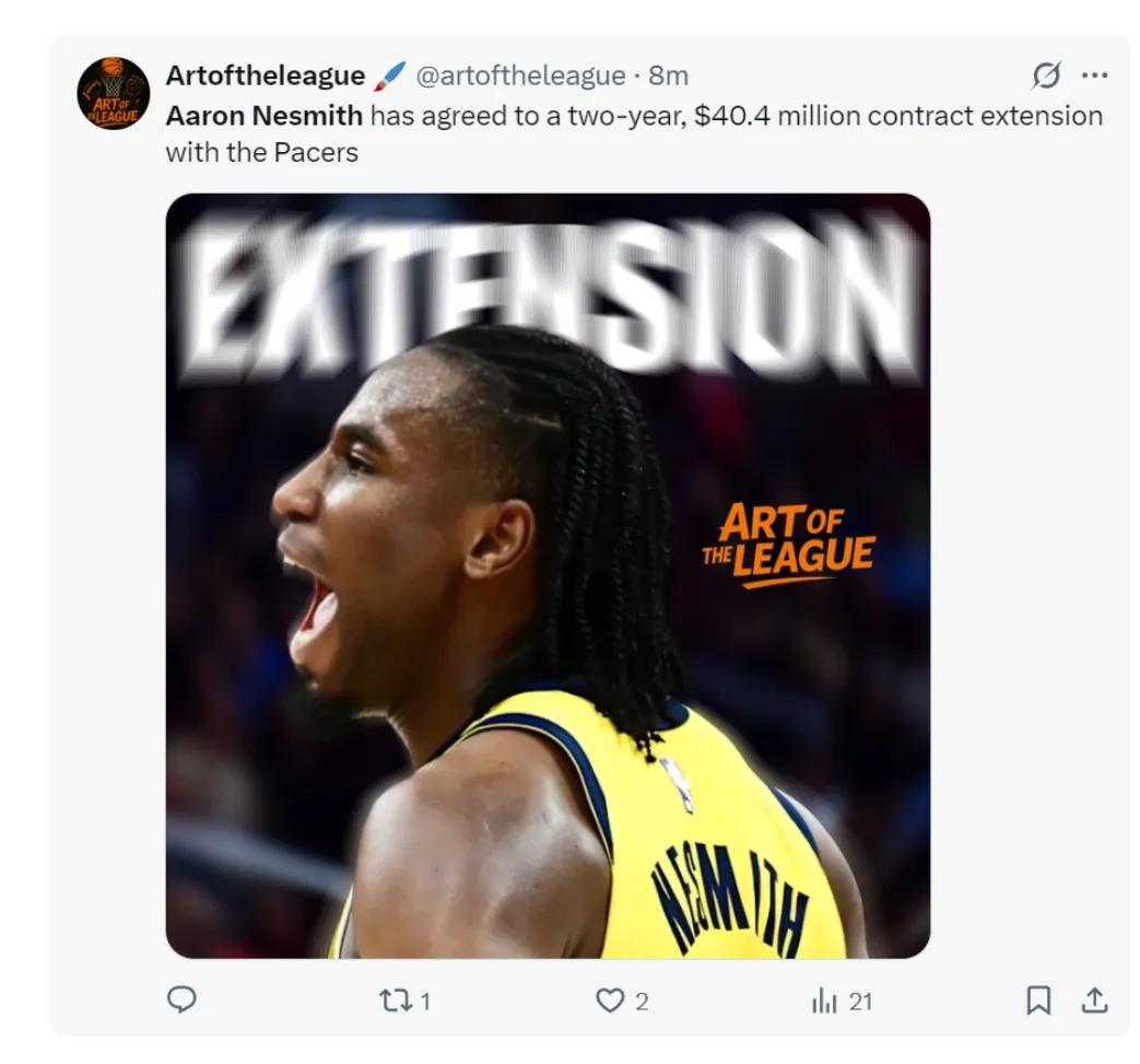 NBA名宿肯尼·史密斯评价道:“真心为内史密斯感到高兴,他配得上这份合约。对步行者而言,2027-28赛季的2020万薪水,甚至不到当时工资帽的12%,性价比无与伦比。”