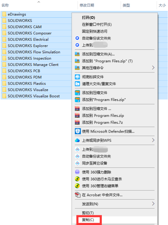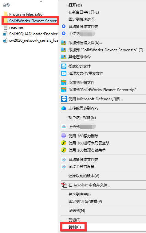 6、继续找到【SolidWorks_Flexnet_Server】文件夹,鼠标右键,选择【复制】。