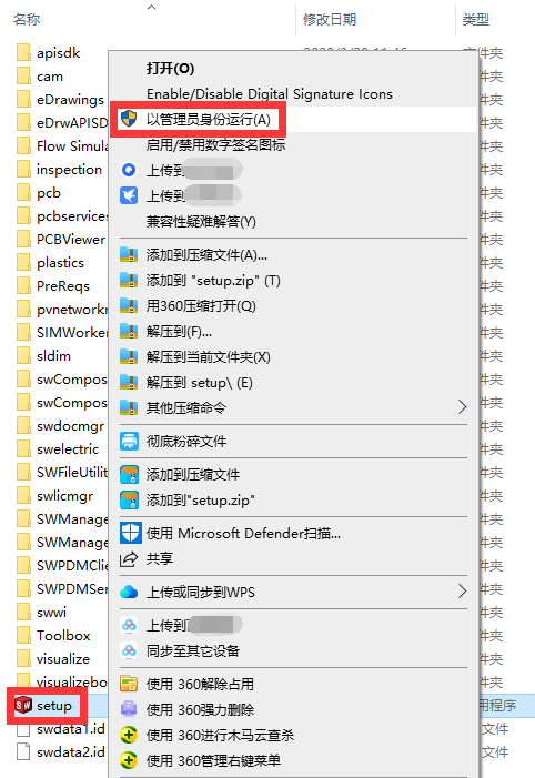 12、找到【setup】程序文件,鼠标右键,选择【以管理员身份运行】。