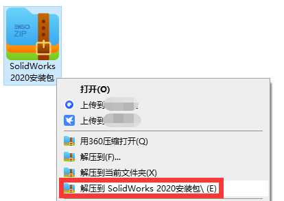 安装步骤:1、得到压缩包之后,鼠标右键解压,点击【解压到SolidWorks 2020安装包】。