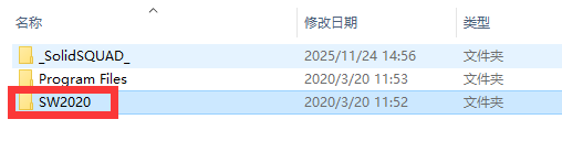 11、回到最开始解压出的文件夹,找到【SW2020】文件夹,双击打开。