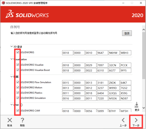 14、根据自己的需求,勾选要安装的产品,然后点击【下一步】。