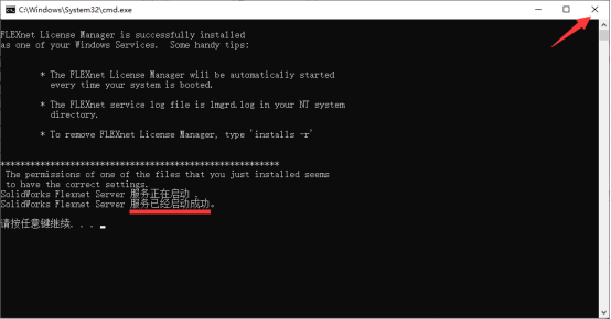10、显示【服务已经启动成功】后,点击右上角【X】退出。