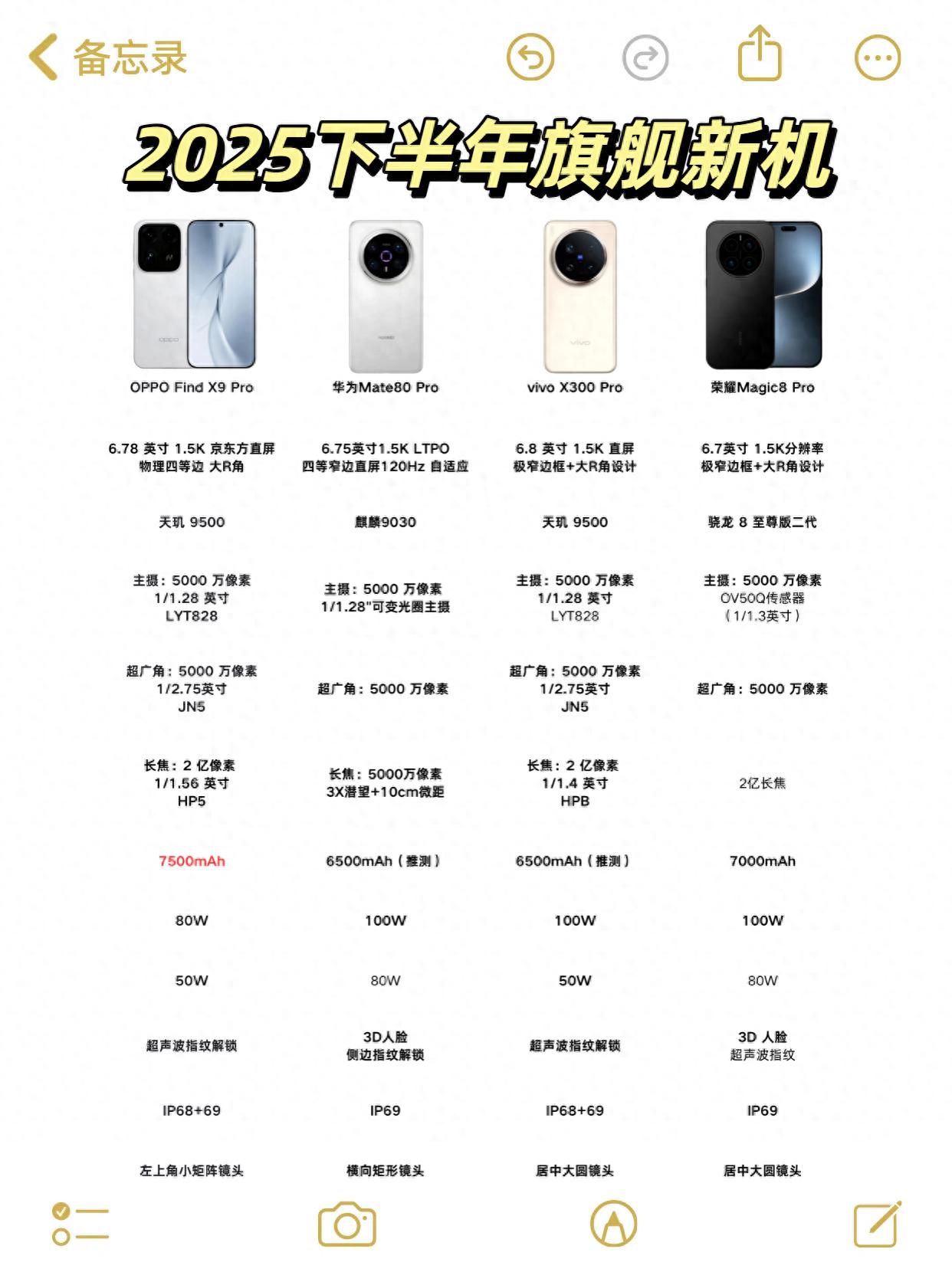 在当下的手机市场中,2025 年下半年的旗舰新机竞争可谓异常激烈,一款比一款令人惊艳。从目前讨论热度颇高的四款新品来看,它们在设计与配置上展现出了一些共性,都采用直屏、大容量电池、高像素潜望长焦的组合,而其中华为 Mate80 Pro 以及荣耀 Magic8 Pro 尤其值得关注。