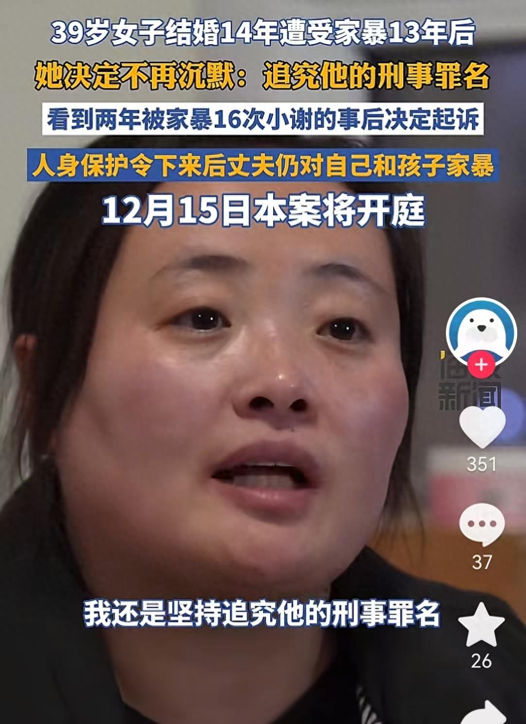 该案件在12月15日开庭,她没有别的要求,就要严惩丈夫,关键是丈夫不但对她家暴,也对他们的儿子家暴,两个人十多年来,一直都是活在恐惧当中。