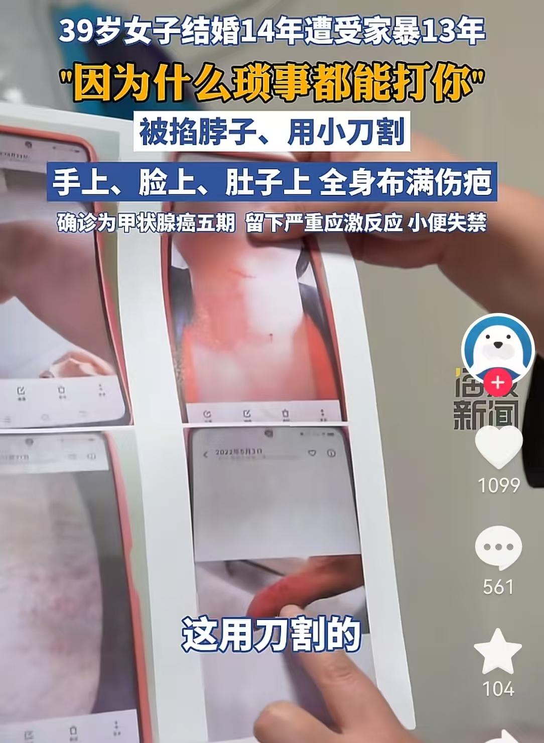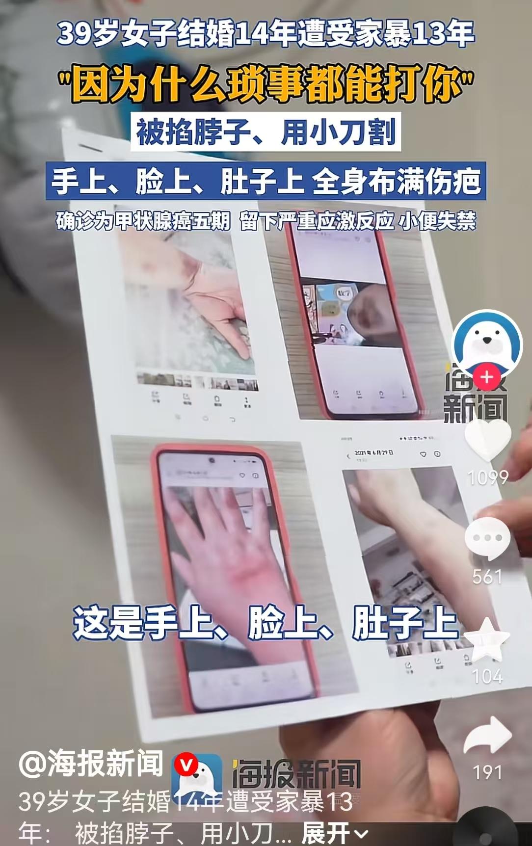 12月14日,湖北恩施的商女士告诉记者,说她结婚14年被丈夫家暴了13年。每一次丈夫家暴她都会见血,不见血不停手。她也忍受了十三年,直到看到四川小谢被家暴的案件后,她开始取证反抗,要求严惩丈夫。